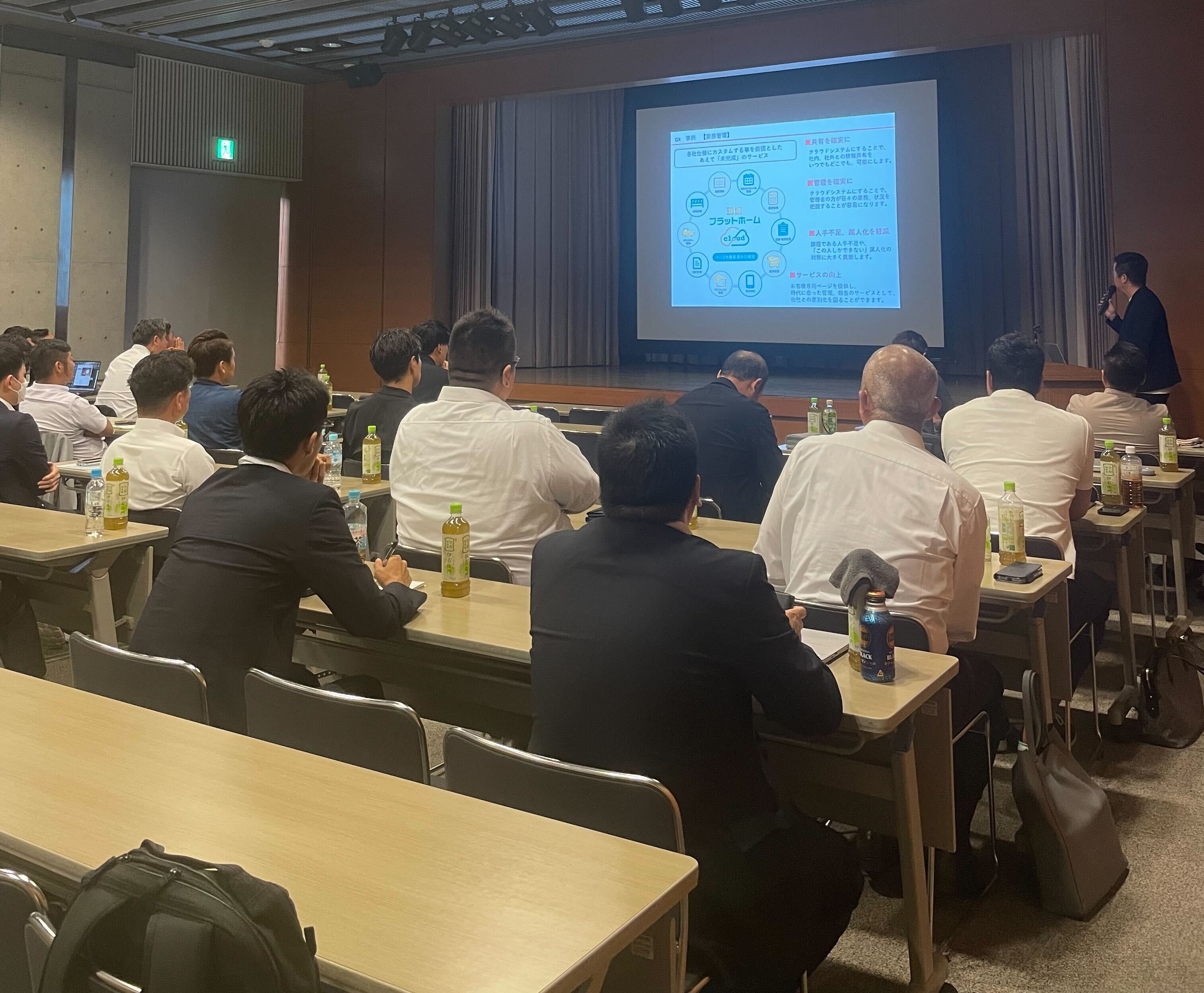 DXついての考え方、web予約や業務管理システム、営業ツールなど、廃棄物業界での様々なDX導入事例などについて講演させていただきました。