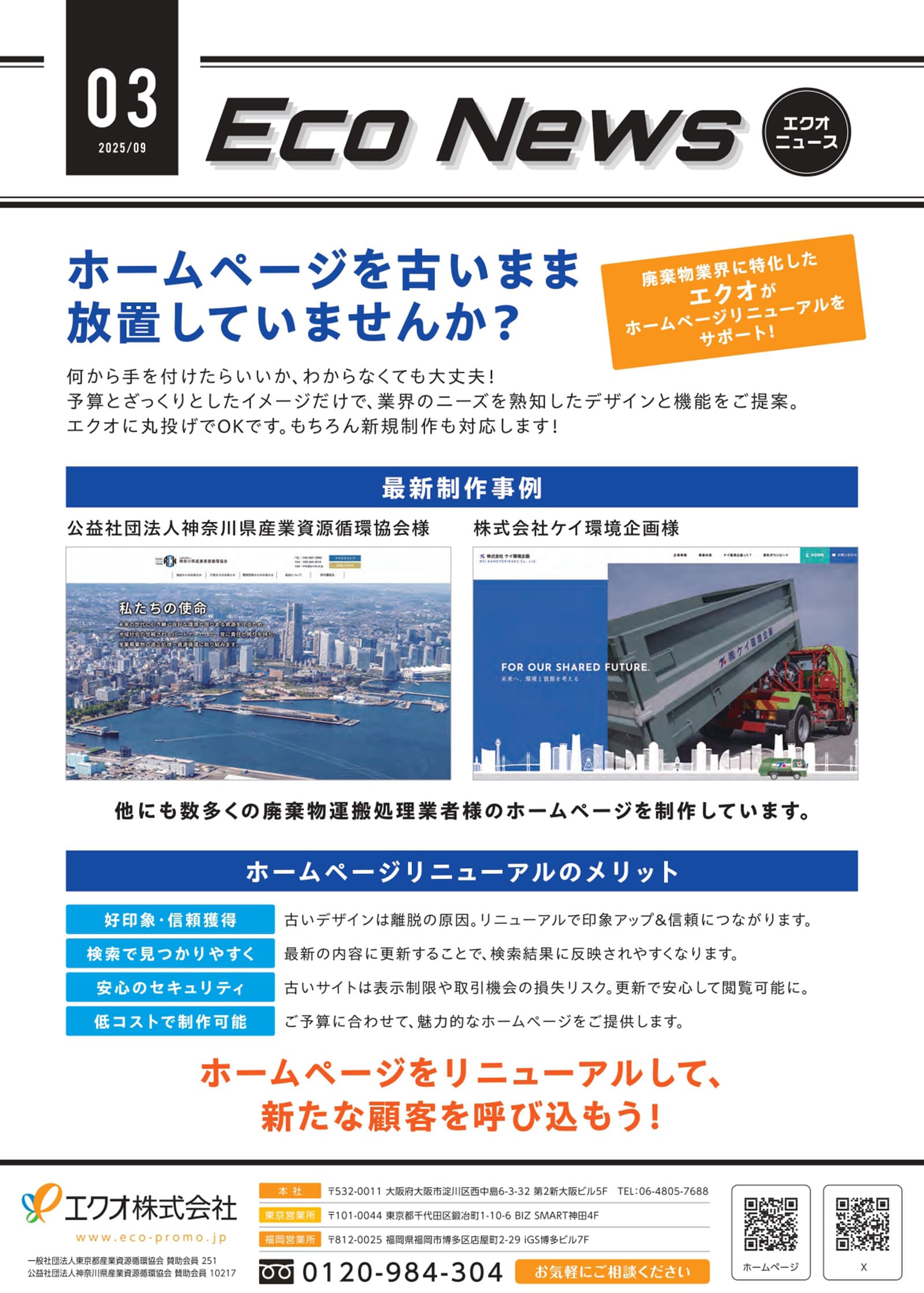 廃棄物業界に特化したエクオが、ホームページリニューアルをサポートします。