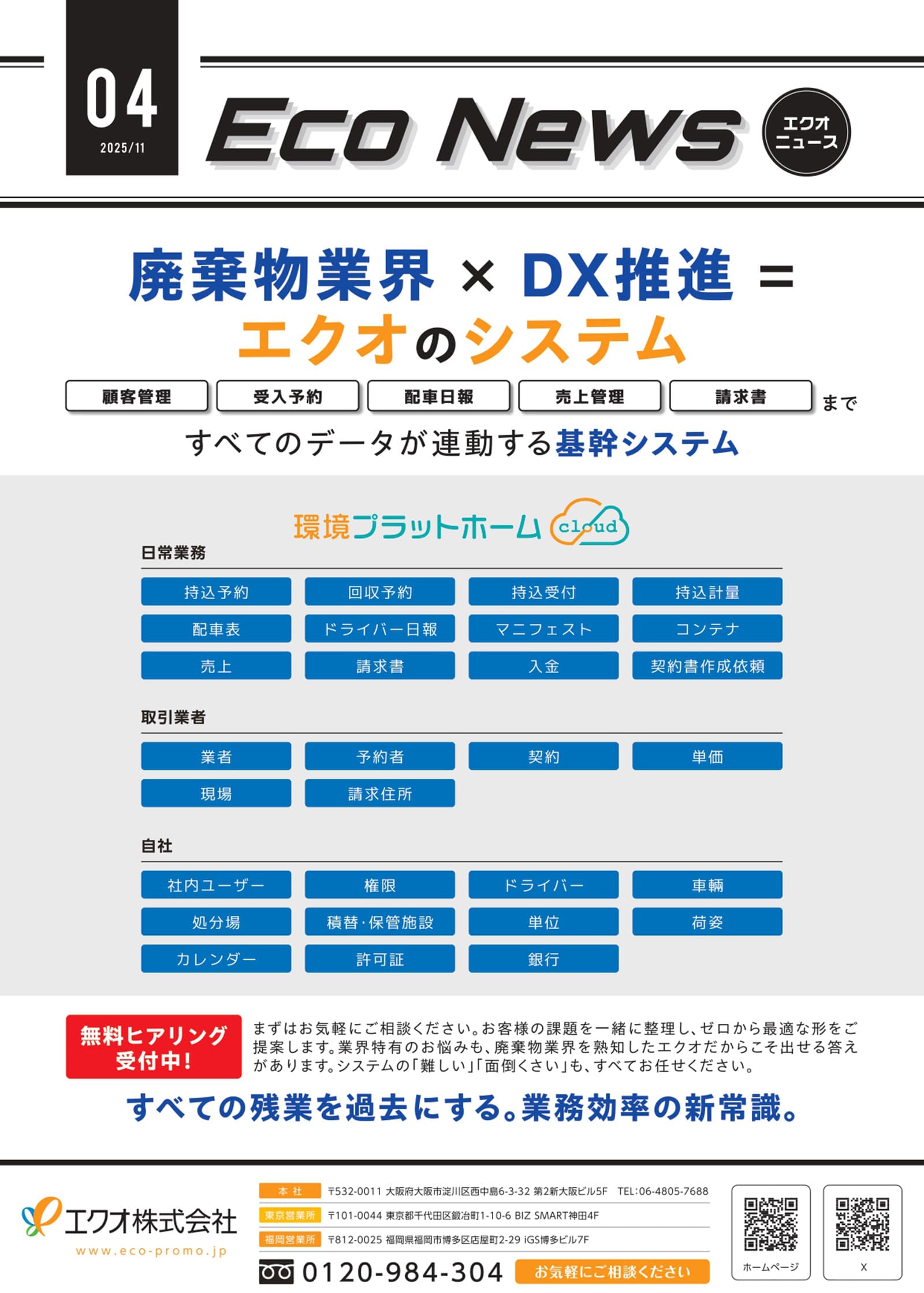 業界特有の悩みにも、廃棄物業界を熟知したエクオならではの解決策があります。